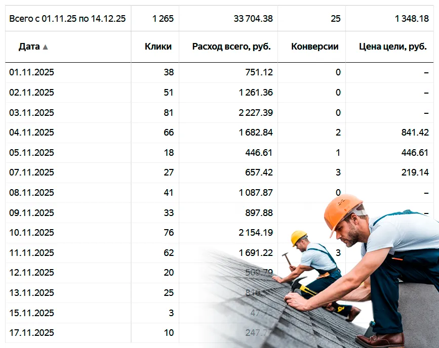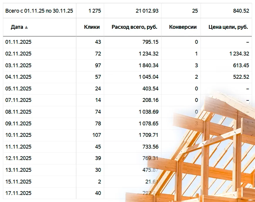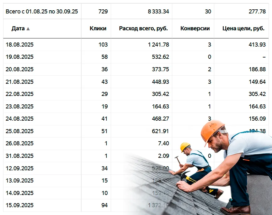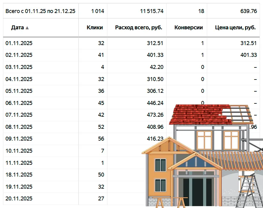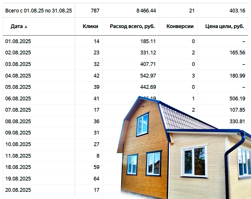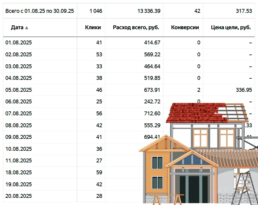 95% рекламы и продвижения провожу в Москве и Московской области (самый конкурентный город) по направлениям: кровельные работы, пристройки и веранды, реконструкция старых деревянных домов, фасадные работы, фундаменты, строительство каменных и каркасных домов и другие направления.